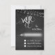 This sophisticated but casual RSVP card is ideal for a laid-back wedding. With a textured blackboard background and strings of sparkling white light accents, I've combined a swirling, elaborate script font to render a graphic depicting "rsvp"; on the back I've placed the word "love". Your personal details are easily added for customising this template as little or much as you wish. Use the template fields to enter your personal details, and click to customise further if you'd like to re-position any of the unlocked layers. Please do not hesitate to reach out to me for special requests or for assistance with customisation.
