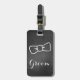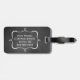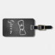 Fun groom's luggage tag done in a charcoal grey chalkboard look, with white outline graphics of a bow tie, on the front and a decorative white frame, on the back. Personalise the white text to suit your needs. Matching bride's luggage tag is available.