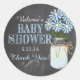 Chalkboard Look Mason Jar Blue Flowers Baby Shower Classic Round Sticker