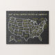 Here's a fun way for kids to learn United States geography; a puzzle that features a chalkboard-like map of all fifty U.S. states. The title, Map of the United States of America, appears at the top of this puzzle.