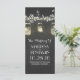 Wedding program with string lights mason jar hanging on the tree branch in the barn.