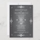Popular chalkboard style wedding invitation is outlined by swirl scroll border and given a chalk effect. On the back, an original illustration of a trendy mason jar holding white hydrangea flowers and a heart personalised with the bride and groom's initials. Whimsical typography gives the invitation a casually elegant look. This economical version includes RSVP information on the invitation. Coordinating items also available.