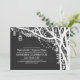 Beautiful vintage yet modern wedding invitation with chalkboard tree design, hanging mason jars, flowers, leaves and string of lights. Perfect black and white invitation for mason jar lovers planning outdoor - garden wedding with wildflowers and trees.