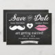 Just add your names and wedding details to this chalkboard with moustache and lips save the date invitation! Make sure to look for the other coordinating products in this collection.