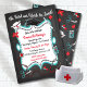 Super modern and cute "The tassel was worth the hassle" Nursing school or Medical school Graduation Invitation with hand drawn illustrations of cap, hassle, nurses hat, scissors, stethoscope, pills and pill bottle on a chalkboard background. Great for a graduation or pinning ceremony for the new nurse or doctor in the family.