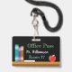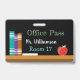 A basic hall pass for student making a trip to the office . The illustration shows a simple black board , some books , a chalk and an apple . It can be very easily personalised with the teacher's name , and room number . Check our store for additional hall passes .