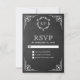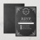Elegant RSVP card featuring an elegant white ornate border and beautiful monogram against a chalkboard background.