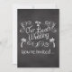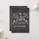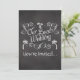 Use this card for the wedding, rehearsal dinner, after-party or any beach wedding related event. Trendy and popular chalkboard blackboard background in charcoal grey with white hand-written look text. Reminiscent of an old town shoppe or vintage appeal. Bring back vintage style with a dusty slate writing board. The shore is a perfect place to celebrate the big wedding day nuptials with this theme, use this keepsake as a favour or cherished memento for times to come. Design Copyright © CustomInvitesOnline.com