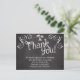 Trendy and Cute Thank you postcard. Celebrate nuptials on the shore with this breezy palm tree with a sketched on chalkboard blackboard with white chalk look. Great for a rustic vintage feel at a beach wedding. Design Copyright © CustomInvitesOnline.com