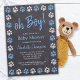 Oh Boy! Invite your friends and family to celebrate the arrival of your new baby boy with this rustic chalkboard with blue and white paw prints baby shower invitations, party accessories and gifts .