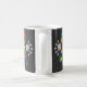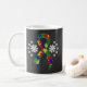 Puzzle ribbon with white flowers done in chalk design. The jigsaw puzzle ribbon stands for Autism Awareness, Child-to-child care and Development awareness, and Asperger Syndrome Awareness. April is Asperger Syndrome Awareness and Autism Awareness Month.