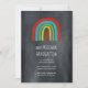 Cute preschool graduation ceremony invitation with chalkboard background and hand-drawn chalk rainbow with heart. Perfect for a preschool, daycare, or family invitation to celebrate your little graduates!
