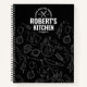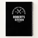 Modern black spiral notebook with white utensil doodles and a bold kitchen badge. Personalize the name and “since” year—perfect for recipes, meal planning, or a thoughtful chef gift.