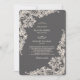 A trendy, romantic invitation featuring a floral lace design on a chalkboard, grey background. A beautiful wedding invitation for your wedding day.<a href='http://www.freepik.com/free-vector/ornamental-lace-background_788315.htm'>Designed by Freepik</a>. <br/><br/>The card is easy to customise with your wording, font, font colour and choice of six paper types.<br/><br/>Not exactly what you're looking for? All our products can be custom designed to meet your needs at no extra charge.<br/><br/>Simply contact us at heartfelthelper@gmail.com<br/><br/>Coordinating products available: Chalkboard Romance Lined Envelope<br/>Chalkboard Romance Response Cards<br/>Chalkboard Romance Postage Stamp<br/>Chalkboard Romance Stickers <br/>Need something more? Just ask us!