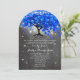 Cobalt Blue Heart Leaf Tree Wedding Invitations with Rustic Romantic elements including initials carved in tree trunk, mason jars, and fireflies