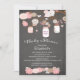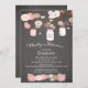 Modern & trendy chalkboard mason jar baby shower invitation featuring a tree branch with pretty shades of pink floral flowers and popular rustic hanging mason jars with "it's a girl" on one. Perfect contemporary mason jar baby shower invitation for a baby girl shower, boy baby shower or neutral baby shower. Visit our shop to view our beautiful selection of mason jar invitations.