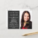 Chalkboard images are popular, and this one is simple, but elegant. Your photograph (black and white or colour) is on the right side, with your custom text and a pretty chalkboard emblem on the left. The back of the card has an additional text field if needed. All the text, front and back, is easily customised.