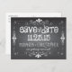 Curly scribbles and doodles galore decorates this fun and whimsical Save the Date chalkboard postcard.