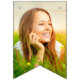 This modern and simple design features the word 'CONGRATS' (editable) and 4 full bleed photos of the graduate. Two bunting flags features the graduate's full name and another 2 have a design that features a trendy sketched bold typography of the graduation year, mortar board / graduation cap and the name of the school on a dark green chalkboard background.