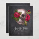Let your guests know you've set a date for your wedding with this gothic skull and florals save the date card.
