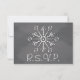 Beautiful snowflake wedding response cards with a two pretty snowflakes on a chalkboard background. Perfect for a winter wonderland holiday or Christmas themed wedding. Artwork © Chrissy H. Studios, LLC. All rights reserved.