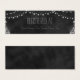 String of Lights Chalkboard © Sunny Mars Designs. Stylish, modern, elegant, classy, trendy, chic customisable formal or cute casual 3" x 1" wedding gift registry mini cards with a beautiful black chalkboard design featuring bulbs of rope or string lights hanging above with a floral tropical design below.