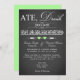 This vintage style typography grey and white chalkboard LOOK post wedding reception invitation has a variety of fonts with scrolls and romantic green hearts on it. It has a fun new take on the Eat, Drink and be Married trend, with a little play on words that say "Ate, drank, and got married" to reflect the earlier destination wedding event. It is shown here on basic paper. It is easily customised with your own information. There is some customisable text that you can edit the way you require. ALSO, please note that everything will print as it appears on your monitor. Zazzle will not edit anything for typos or mis-alignment etc., and I will not see it once you have ordered it. If you need help with your wording, please email me BEFORE you order. If there are any other items you need to make your event extra special, please email your request to niteowlstudio@gmail.com.