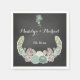 Pretty modern wedding paper napkins with a black chalkboard look background and lots of pretty succulents in green, grey, lavender, off white, and blue with an area you can easily add the couple's names and wedding date! These easy to customise wedding paper napkins are sure to be a hit at any wedding related event including the wedding reception, bridal shower, rehearsal dinner, or couple's shower. We have the matching paper plates!