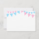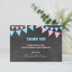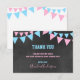 Lovely thank you note cards for a sports letters GENDER REVEAL Party baby shower. Chalkboard background with hanging bunt flags. Blue turquoise, pink and white colours. BACK OF CARD is WHITE - so you can add an additional handwritten personal note / message!