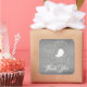 Fall in love with this chirping bird thank you sticker on a chalkboard background and and a heart shaped tail.