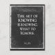 Chalkboard texture design with a white chalk border and decorative flourish. Quotation by the ancient persian poet Rumi. The quote reads: the art if knowing is knowing what to ignore. Wise words from this inspirational sufi poet.