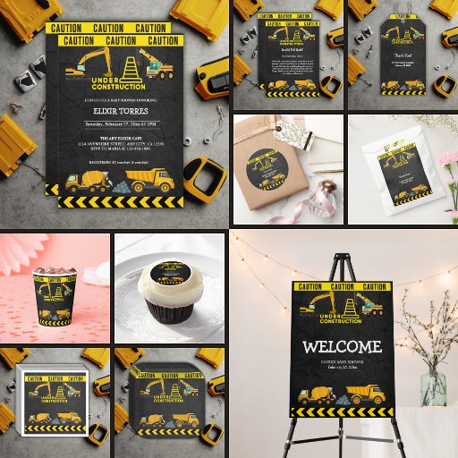 Get ready to celebrate your little builder with this charming Chalkboard Under Construction Baby Shower theme! Featuring playful construction vehicles, yellow and black caution stripes, and a rustic chalkboard background, this collection is perfect for a fun and creative baby shower. If you need any other matching product or customisation, kindly message via Zazzle.