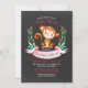Chalkboard Watercolor Monkey Girl Baby Shower Invitation