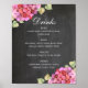 Chalkboard wedding alcohol drinks bar. Pink flower Poster