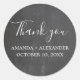 Chalkboard wedding. Modern grey script thank you Classic Round Sticker