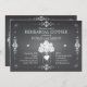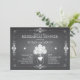 Popular chalkboard style wedding rehearsal dinner party invitation is outlined by a lovely swirling scroll border and given a chalk effect. Original illustration of a rustic mason jar holding an hydrangea flower bouquet is accented with a white heart that holds the couple's initials on the back. Whimsical typography gives this rehearsal dinner invitation a fun, modern and casual vibe. Coordinating items also available.