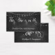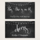 Treat your wedding reception guests to a cocktail or two with the help of these drink tickets. Elaborate text overlays are designed using a fancy script font. On the front is "This One is on Us" and on the back is "cheers". Use my template fields to customise the cards with your personal details. The background is covered in a textured blackboard pattern which has been accented with strands of bright white twinkling fairy lights. Great for country or mountain wedding event celebrations. This is part of a growing set filled with coordinating designs.  // 73 // Designed by Melody Watson for Paper Muserie.