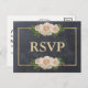 Chalkboard White Rose Golden Frame RSVP Meal Invitation Postcard