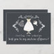Contemporary "Will you be my matron of honour" card featuring a wedding dress, veil, flowers & shoes with a pretty hand lettered font set on a modern black chalkboard background.