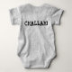 Baby suit features an original illustration of a loaf of braided challah bread, with CHALLAH! on the back in a fun font.