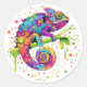 Chameleon Paint Stains Watercolor Style Classic Round Sticker