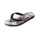 The flip flops arrived in a most colorful package which also had them double bagged in a black drawstring pouch which makes them great for gifting. They are a quality product with plenty of durability. The printing is vivid and true to that pictured on the web. Great look!