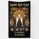 A personalised 2019 New Years Eve banner with a party atmosphere. Golden champagne flutes clinking together with gold coloured fireworks exploding all around. Art Nouveau / art deco style design.