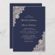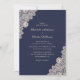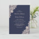 These elegant lace wedding invitations featuring champagne floral lace on a navy blue background are perfect for inviting your guests to your romantic champagne and navy blue rustic wedding party. Easy to personalise template.