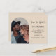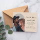 On front: Add your own vertical size photo inside the arch photo frame. A trendy champagne colored background, black text. Templates for names and the date. The name and the text: Save the Date are written with a modern hand lettered style script with a heart.