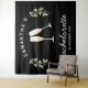 personalized retro bachelorette party tapestry in black and white with champagne glasses is perfect as a bachelorette party photo backdrop. Celebrate your bridal shower in style with the perfect champagne party theme in black and white, the perfect theme for the nostalgic vintage 70s bride and her bridesmaids.