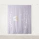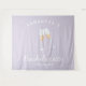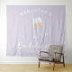 personalised retro bachelorette party tapestry in lavender purple and white with champagne glasses is perfect as a bachelorette party photo backdrop. Celebrate your bridal shower in style with the perfect champagne party theme in mauve and white, the perfect theme for the nostalgic vintage 70s bride and her bridesmaids.