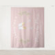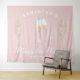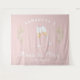 Miss to Mrs personalized retro bachelorette party tapestry in blush pink and white with champagne glasses is perfect as a bachelorette party photo backdrop. Celebrate your bridal shower in style with the perfect champagne party theme in blush pink and white, the perfect theme for the nostalgic vintage 70s bride and her bridesmaids.