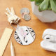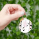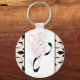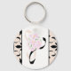 This favor keychain is decorated with a bride's bouquet in the colors Pink Champagne and Black in damask bars superimposed on a white background.