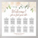 This 10 table wedding seating chart features a rustic boho chic floral design with hand painted watercolor roses and blossoms in neutral shades of champagne blush and pale peach along with eucalyptus leaves and foliage. The elegant script calligraphy title reads: Welcome! Please find your table. The chart has room for 100 guests with 10 seats per table, and there is space for the names of the couple and wedding date at the bottom. Wonderful way to add beauty, elegance, and charm to your wedding reception, while making it easy for your guests to find their seats.